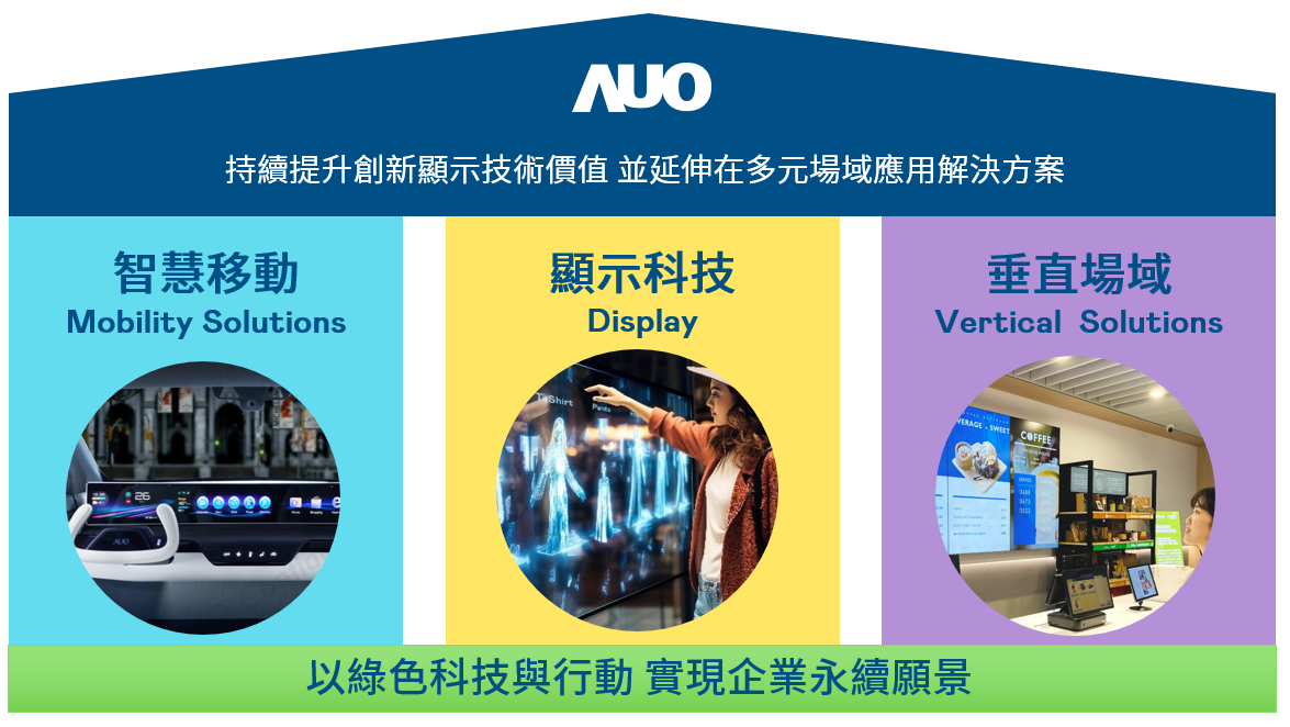 我們持續推動「雙軸轉型」,在精進顯示技術附加價值(Go Premium),與深化垂直市場應用(Go Vertical)的策略下,對應人生就是博的優勢競爭力與趨勢,我們奠定顯示技術、智慧移動、垂直場域三大永續營運支柱,在顯示技術領域的根基之上,延伸布局多元場域應用解決方案。將先進顯示科技助力智慧移動及垂直場域發展,並以綠色科技與行動為實踐,在轉型之路上貫徹永續經營之願景。